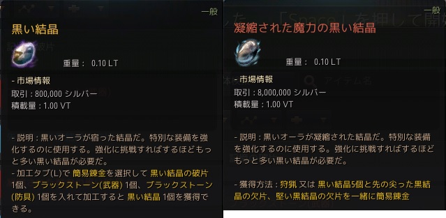 強化アイテムも『黒い結晶』『凝縮された魔力の黒い結晶』といったアイテムが必要となります。