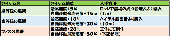 このアイテム熟練度とは違い「馬の速度が上がる」固有効果があります。