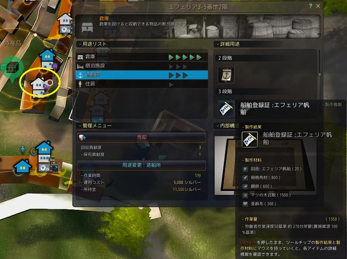ここでエフェリア護衛船も制作可能です。