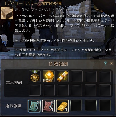 ここで受けれる依頼『[デイリー]パラージ家門の好意』から、
