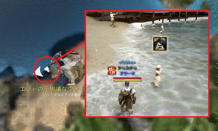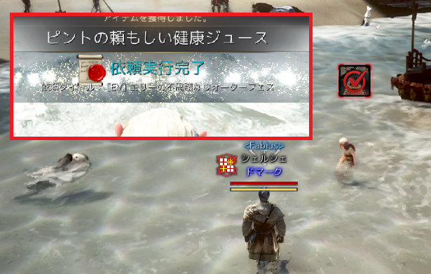 イベント会場の海ではしゃいでいるシャイ族の「住人」から依頼を受けることができます。