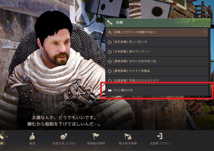Posted in 〇依頼一覧 【黒い砂漠】[EV]魔女の印 Author: シェルシェ Published Date: 2022年10月27日 Leave a Comment on 【黒い砂漠】[EV]魔女の印 @[EV]魔女の印 ハロウィンイベント期間中に、 アレハンドロ農場にいる<探索拠点管理>アマデオ・アレハンドロ から受注することができます。 「魔女の印と呼ばれている装飾物を探してみよう」 とのことで、アレハンドロ農場に設置された魔女の印を3つ探します。 魔女の印はマップ上から位置を確認することができ、 3つの印に話しかけることで目標が達成されます。 目標達成後、アマデオ・アレハンドロのもとに戻り、 報告をすることで依頼が完了します。 Author: シェルシェ